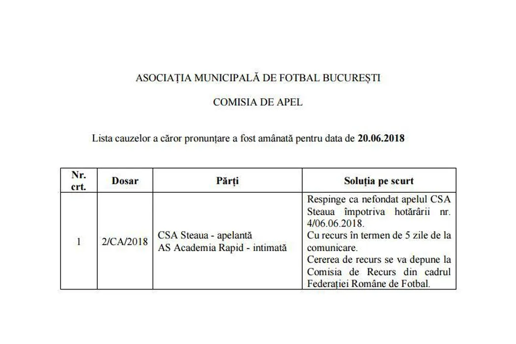 AMFB a dat sentința în recursul procesului Academia – Rapid! Prima reacție a lui Talpan. Incredibil: forul publicase decizia cu trei ore și jumătate înaintea ședinței Comisiei de Apel, apoi documentul a fost șters: „A fost o eroare!”