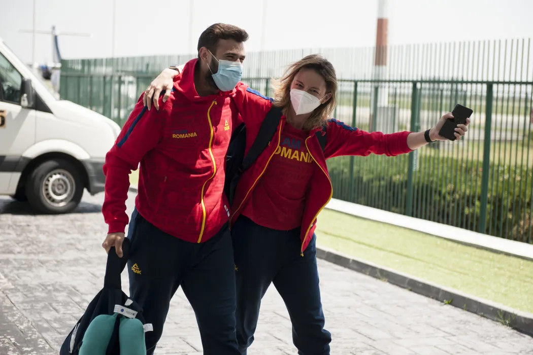 Scrimera Ana-Maria Popescu (D), medaliata cu argint in proba feminina individuala de spada la Jocurile Olimpice de la Tokyo, revine in tara, pe Aeroportul International 'Henri Coanda' Otopeni, marti, 27 iulie 2021. PASCAL PAMFIL / MEDIAFAX FOTO