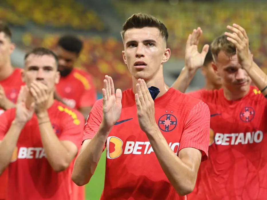 Octavian George Popescu saluta galeria dupa meciul de fotbal dintre FCSB si FC Hermannstadt, contand pentru Superliga Superbet, desfasurat pe Arena Nationala din Bucuresti, duminica 28 august 2022. © FOTO:Razvan Pasarica/SPORT PICTURES