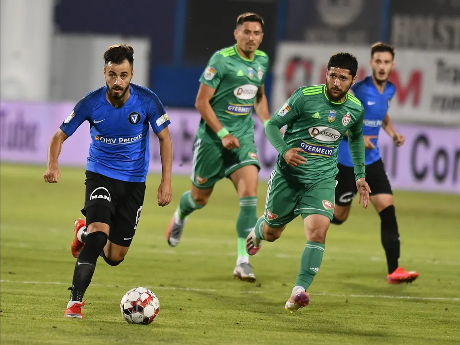 Virgil Andrei Ciobanu si Anass Achahbar in meciul de fotbal dintre FC Viitorul si Sepsi OSK Sfantu Gheorghe, contand pentru play-out-ul Ligii 1 Casa Pariurilor, disputat fara spectatori pe Arena centrala a Academiei Gheorghe Hagi din Ovidiu, sambata 1 august 2020. © FOTO:Razvan Pasarica/SPORT PICTURES