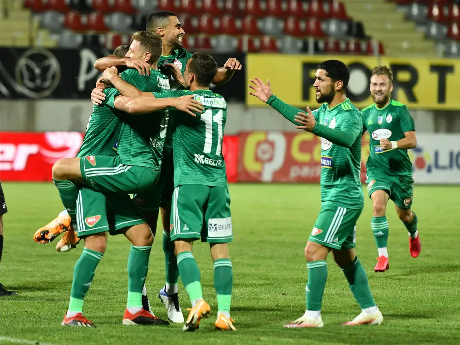 Bucurie a fotbalistilor din Sfantu Gheorghe cu Bogdan Mitrea, Rachid Bouhenna si Anass Achahbar dupa golul reusit la ultima faza in meciul de fotbal dintre Astra Giurgiu si Sepsi OSK Sfantu Gheorghe, contand pentru Liga 1 Casa Pariurilor, desfasurat pe Stadionul Marin Anastasovici din Giurgiu, duminica 13 septembrie 2020. © FOTO:Razvan Pasarica/SPORT PICTURES
