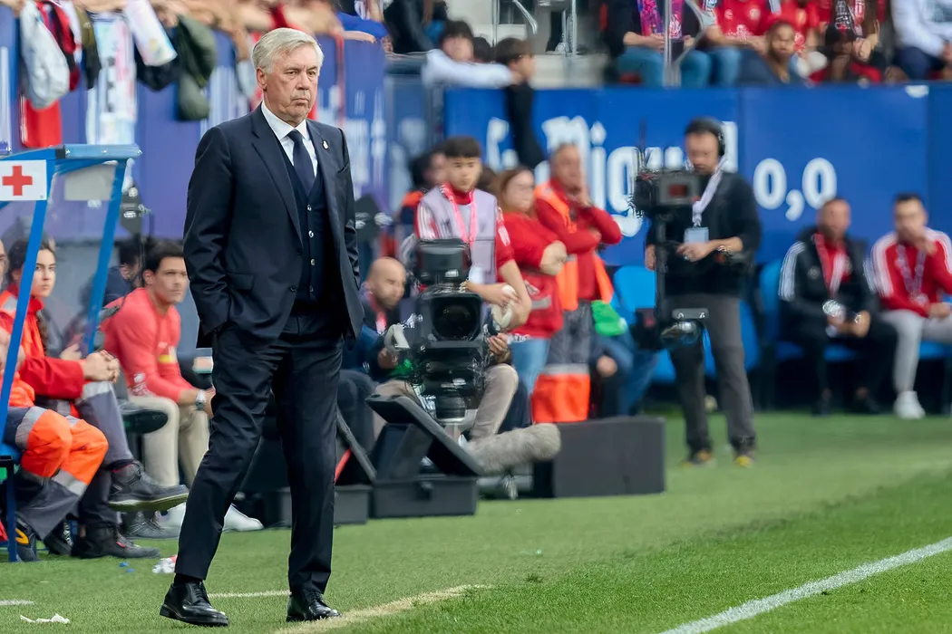 Carlo Ancelotti, Real Madrid coach seen during the LaLiga EA Sports match between Osasuna and Real Madrid at El Sadar Stadium. Final score; Osasuna 2:4 Real Madrid. - Fernando Pidal / SOPA//SOPAIMAGES_SOPA1468/Credit:SOPA Images/SIPA/2403171459,Image: 857545557, License: Rights-managed, Restrictions: , Model Release: no