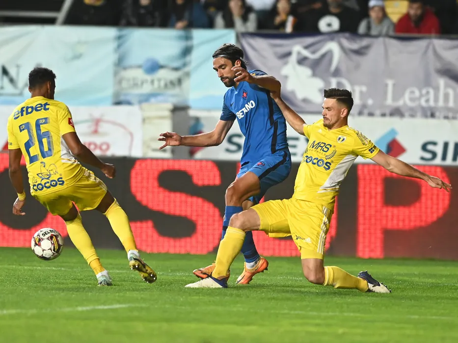 Andrea Compagno si Bart Adrianus Johannes Meijers in meciul de fotbal dintre Petrolul Ploiesti si FCSB, contand pentru Superliga Superbet, desfasurat pe Stadionul Ilie Oana din Ploiesti, duminica 9 octombrie 2022. © FOTO:Razvan Pasarica/SPORT PICTURES