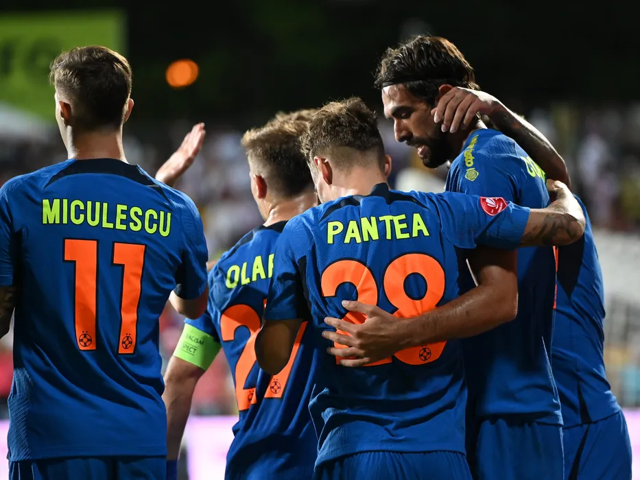 Andrea Compagno se bucura dupa un gol marcat alaturi de fotbalistii stelisti in meciul de fotbal dintre Otelul Galati si FCSB, din cadrul Superligii Superbet, desfasurat pe Stadionul Otelul din Galati, sambata 29 iulie 2023. © FOTO:Razvan Pasarica/SPORT PICTURES