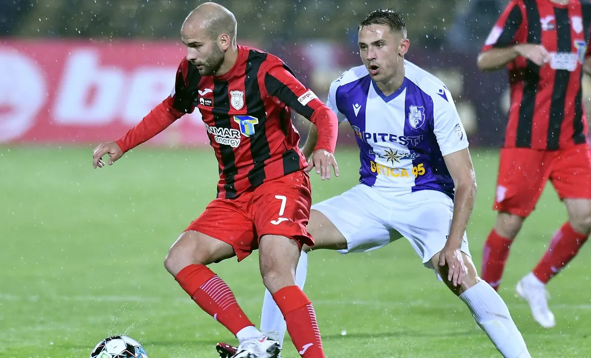 Dario Canadija si Andrei Cristian Blejdea in meciul de fotbal dintre FC Arges si Astra Giurgiu, contand pentru Liga 1 Casa Pariurilor, desfasurat fara spectatori pe Stadionul Nicolae Dobrin din Pitesti, vineri 16 octombrie 2020. © FOTO:Razvan Pasarica/SPORT PICTURES
