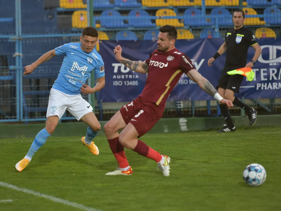 Ion Gheorghe si Andonie Andrei Burca in meciul de fotbal dintre FC Voluntari si CFR Cluj, contand pentru Play-off-ul Ligii 1 Casa Pariurilor, desfasurat pe Stadionul Anghel Iordanescu din Voluntari, duminica 24 aprilie 2022. © FOTO:Razvan Pasarica/SPORT PICTURES
