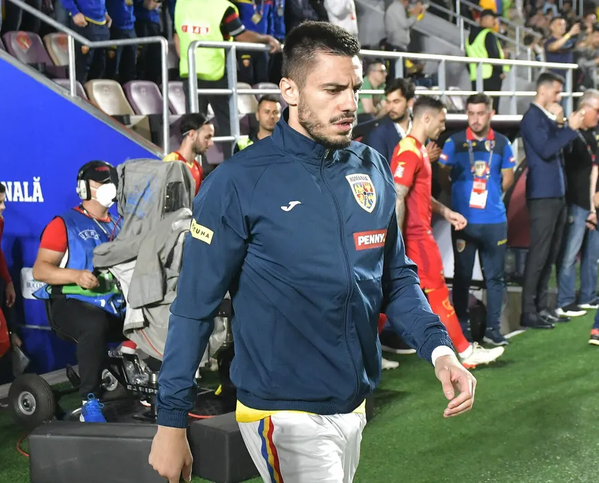Andrei Burca intra pe teren la meciul de fotbal dintre Romania si Muntenegru, contand pentru Liga Natiunilor, desfasurat pe Stadionul Rapid Giulesti din Bucuresti, marti 14 iunie 2022. © FOTO:Razvan Pasarica/SPORT PICTURES