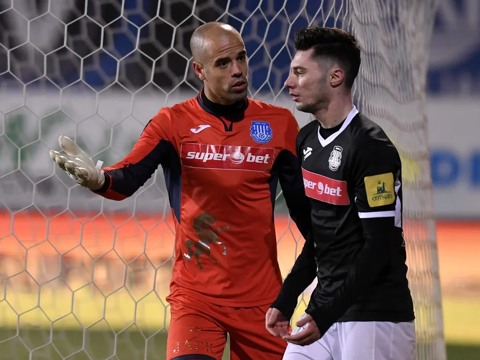 Ruben Mino si Andrei Burlacu in meciul de fotbal dintre FC Viitorul si CSM Politehnica Iasi, contand pentru Liga 1 Betano, desfasurat pe Stadionul central al Academiei Gheorghe Hagi din Ovidiu, vineri 15 februarie 2019. © FOTO Razvan Pasarica/SPORT PICTURES