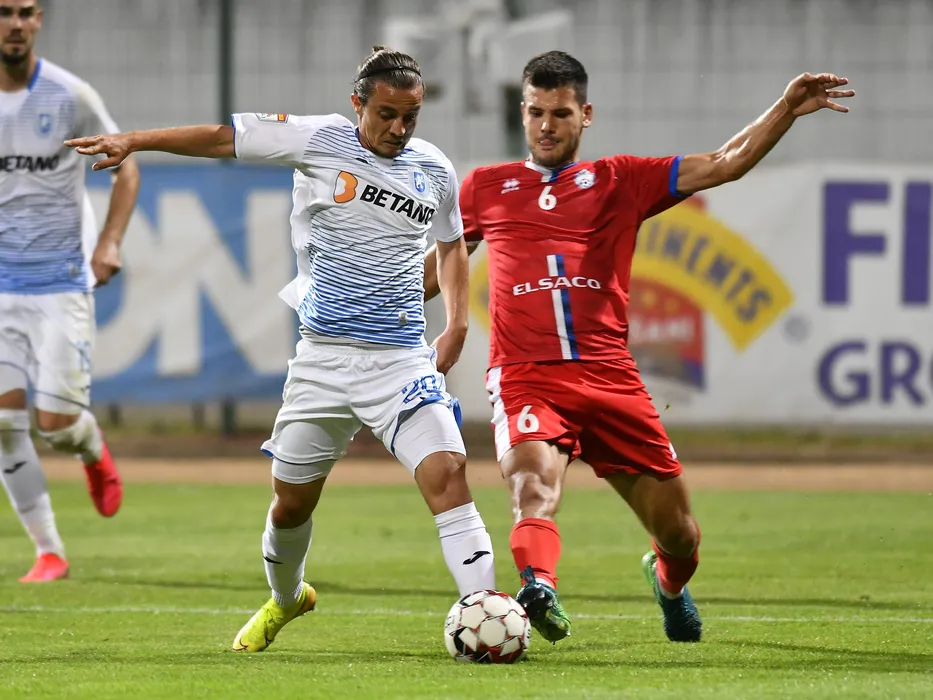 Andrei Chindris il faulteaza in careu pe Gustavo Di Mauro Vagenin in meciul de fotbal dintre FC Botosani si Universitatea Craiova, contand pentru play-off-ul Ligii 1 Casa Pariurilor, disputat fara spectatori pe Stadionul Municipal din Botosani, duminica 19 iulie 2020. © FOTO:Razvan Pasarica/SPORT PICTURES