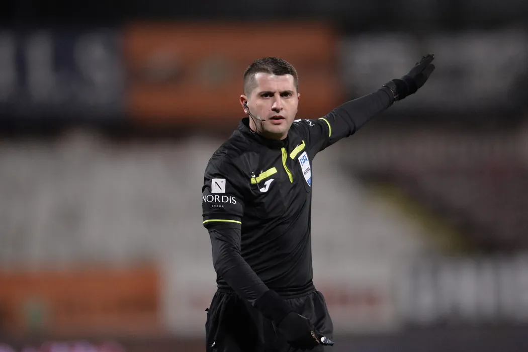 Arbitrul Andrei Chivulete conduce meciul de fotbal dintre Dinamo si Sepsi OSK din etapa a XXIII-a a Ligii 1, disputat pe stadionul Dinamo din Bucuresti, sambata, 13 februarie 2021. ALEXANDRU DOBRE / MEDIAFAX FOTO
