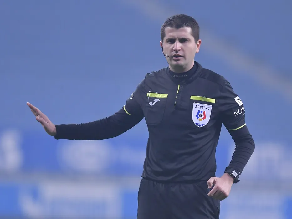 Arbitrul central Andrei Florin Chivulete in meciul de fotbal dintre Universitatea Craiova si FC Arges, contand pentru Liga 1 Casa Pariurilor, desfasurat fara spectatori pe Stadionul Ion Oblemenco din Craiova, vineri 29 ianuarie 2021. © FOTO:Razvan Pasarica/SPORT PICTURES
