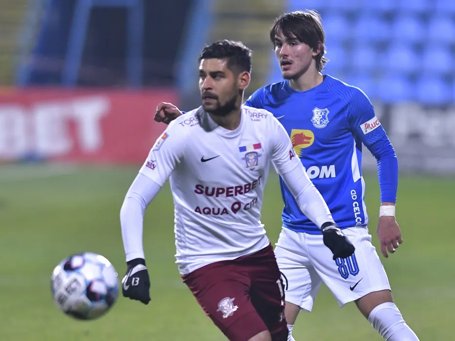 Lucian Petre Goge si Alexi Paul Pitu in meciul de fotbal dintre Farul Constanta si Rapid Bucuresti, contand pentru Liga 1 Casa Pariurilor, desfasurat pe Stadionul central al Academiei Gheorghe Hagi din Ovidiu, sambata 4 decembrie 2021. © FOTO:Razvan Pasarica/SPORT PICTURES