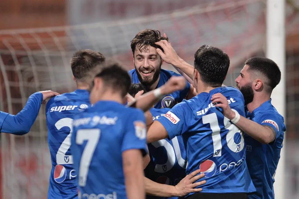 Echipele Dinamo Bucuresti si Viitorul Constanta (echipament albastru-negru) s-au intalnit intr-o partida disputata in etapa 25 din Liga1 la fotbal, vineri 26 februarie 2021, pe stadionul Dinamo din Bucuresti. ALEXANDSRU DOBRE / MEDIAFAX FOTO