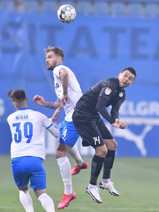Mihai Alexandru Balasa si Raul Andrei Rusescu in meciul de fotbal dintre Universitatea Craiova si Academica Clinceni, contand pentru Liga 1 Casa Pariurilor, desfasurat fara spectatori pe Stadionul Ion Oblemenco din Craiova, vineri 23 octombrie 2020. © FOTO:Razvan Pasarica/SPORT PICTURES