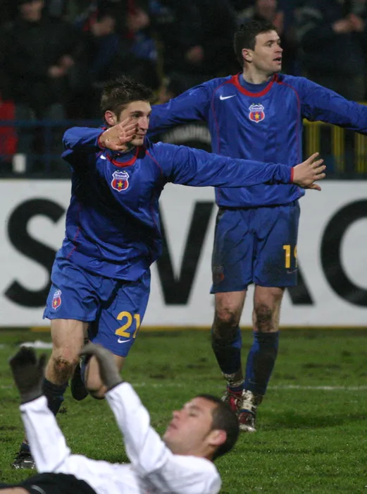 Echipa Steaua Bucuresti, a intilnit, joi, pe teren propriu formatia Valencia, in mansa secunda a 16-imilor Cupei UEFA. In imagine, Andrei Cristea si Daniel Oprita