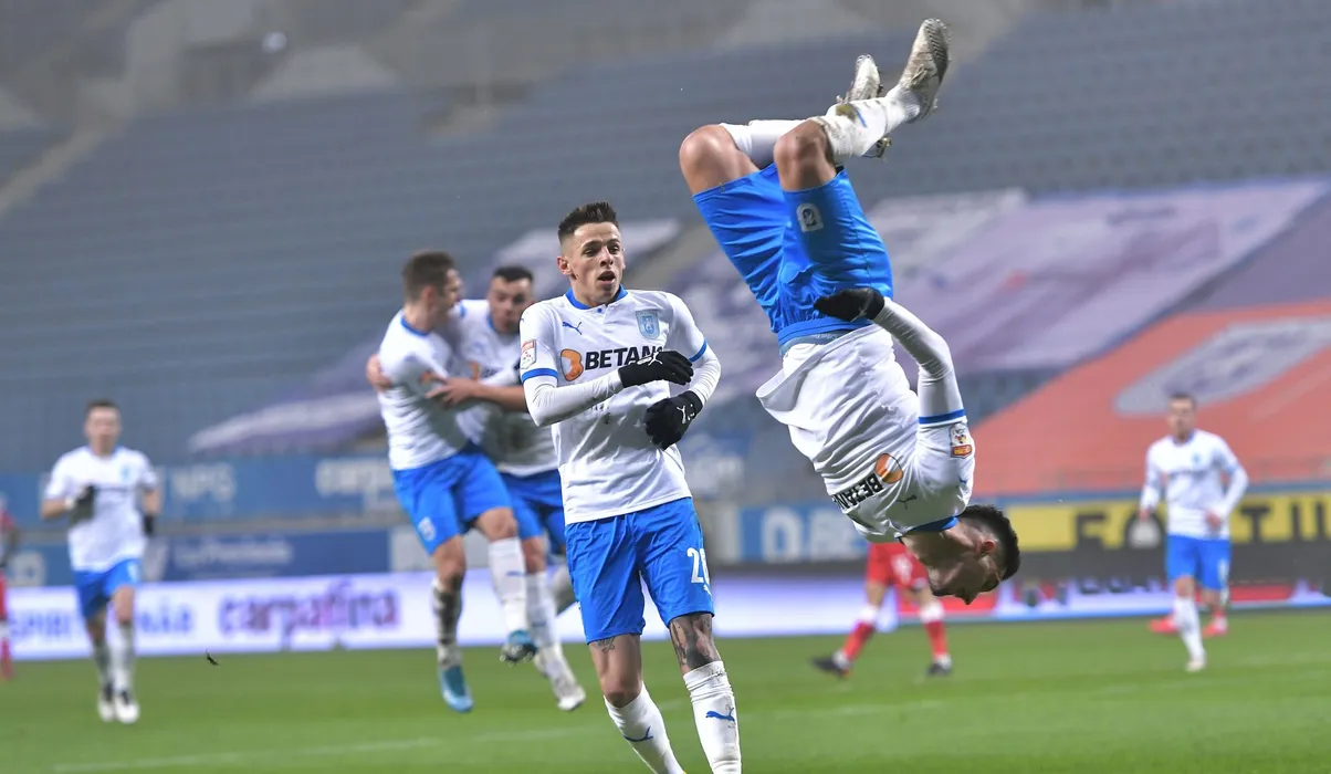 Andrei Virgil Ivan se bucura dupa un gol marcat alaturi de Alexandru George Cimpanu in meciul de fotbal dintre Universitatea Craiova si Dinamo Bucuresti, contand pentru Liga 1 Casa Pariurilor, desfasurat fara spectatori pe Stadionul Ion Oblemenco din Craiova, sambata 6 februarie 2021. © FOTO:Razvan Pasarica/SPORT PICTURES