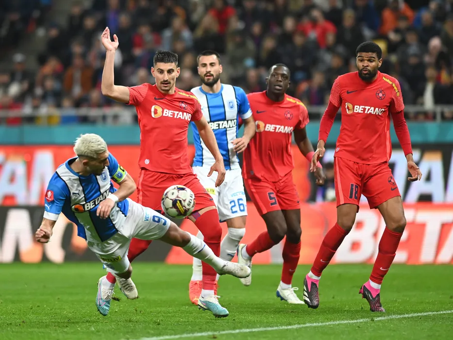Andrei Virgil Ivan, Iulian Lucian Cristea, Gjoko Zajkov, Joyskim Aurelien Dawa Tchakonte si Sylas Laouari Edjouma Malcom in meciul de fotbal dintre FCSB si Universitatea Craiova, contand pentru Play-off-ul Superligii Superbet, desfasurat pe Arena Nationala din Bucuresti, sambata 18 martie 2023. © FOTO:Razvan Pasarica/SPORT PICTURES