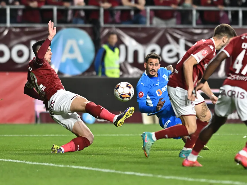 Cristian Ionut Sapunaru si Jovan Markovic in meciul de fotbal dintre Rapid Bucuresti si Universitatea Craiova, din cadrul Play off-ului Superligii Superbet, desfasurat pe Superbet Arena-Giulesti din Bucuresti, luni 29 aprilie 2024. © FOTO:Razvan Pasarica/SPORT PICTURES