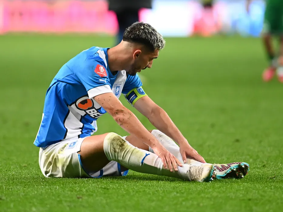 Andrei Virgil Ivan la pamant dupa meciul de fotbal dintre Universitatea Craiova si Farul Constanta, contand pentru Play-off-ul Superligii Superbet, desfasurat pe Stadionul Ion Oblemenco din Craiova, sambata 13 mai 2023. © FOTO:Razvan Pasarica/SPORT PICTURES