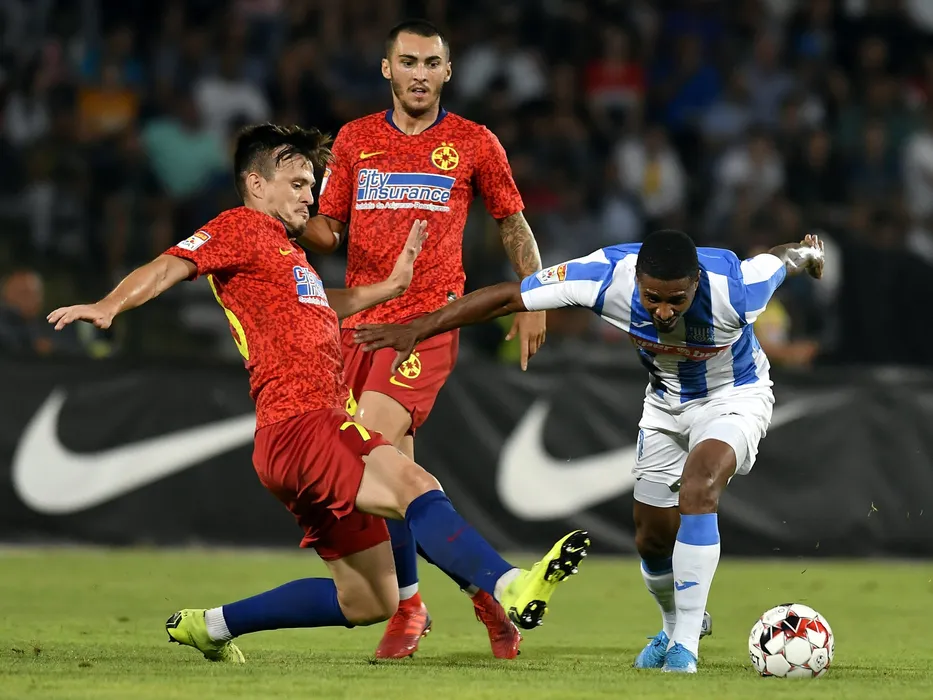 Andrei Marc si Thierry Moutinho in meciul de fotbal dintre FCSB si CS Politehnica Iasi, din cadrul Ligii 1 Casa Pariurilor, desfasurat pe Stadionul Nicolae Dobrin din Pitesti, duminica 4 august 2019. © FOTO:Razvan Pasarica/SPORT PICTURES