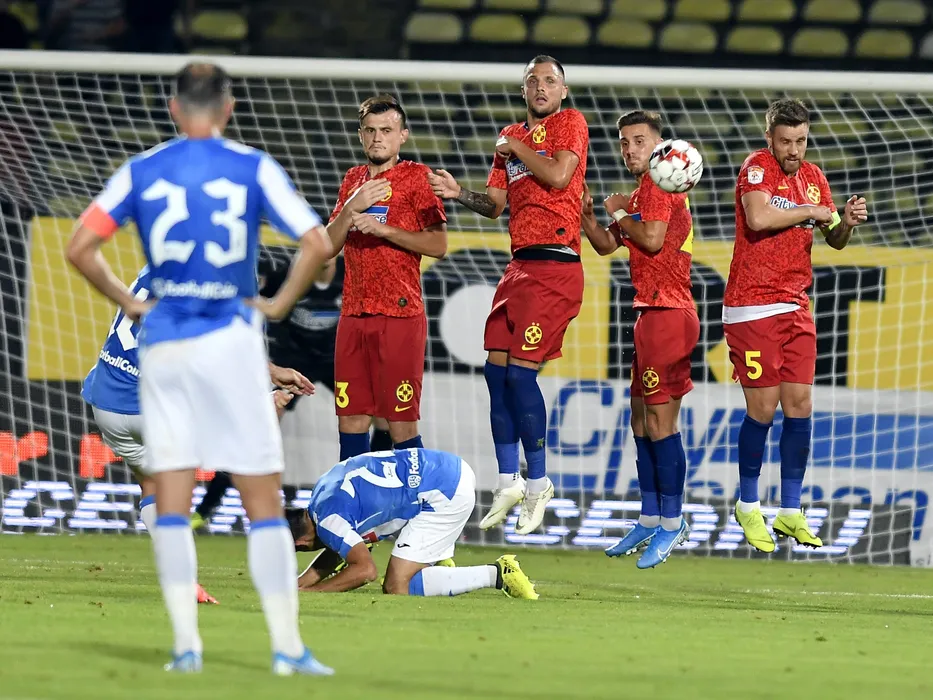 Zid stelist format din Andrei Marc,Thierry Moutinho,Razvan Oaida si Mihai Pintilii in meciul de fotbal dintre FCSB si CS Politehnica Iasi, din cadrul Ligii 1 Casa Pariurilor, desfasurat pe Stadionul Nicolae Dobrin din Pitesti, duminica 4 august 2019. © FOTO:Razvan Pasarica/SPORT PICTURES