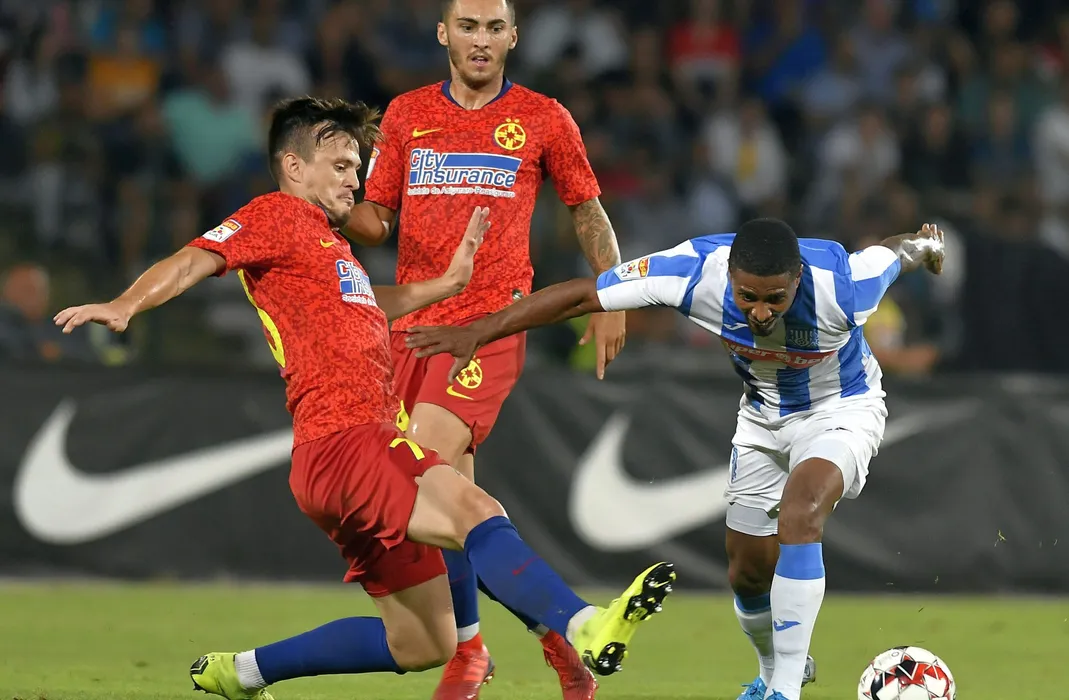 Andrei Marc si Thierry Moutinho in meciul de fotbal dintre FCSB si CS Politehnica Iasi, din cadrul Ligii 1 Casa Pariurilor, desfasurat pe Stadionul Nicolae Dobrin din Pitesti, duminica 4 august 2019. © FOTO:Razvan Pasarica/SPORT PICTURES