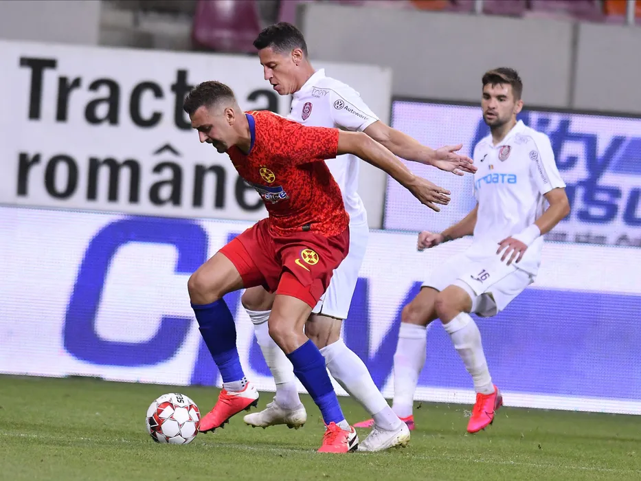 George Andrei Miron si Mario Rondon in meciul de fotbal dintre FCSB si CFR Cluj, contand pentru play-off-ul Ligii 1 Casa Pariurilor, disputat fara spectatori pe Arena Nationala din Bucuresti, vineri 31 iulie 2020. © FOTO:Razvan Pasarica/SPORT PICTURES