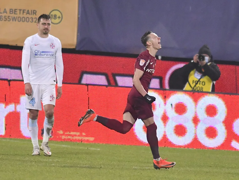 Valentin Ionut Costache se bucura dupa un gol marcat spre supararea lui Andrei George Miron in meciul de fotbal dintre CFR Cluj si FCSB, contand pentru Liga 1 Casa Pariurilor, desfasurat fara spectatori pe Stadionul Dr. Constantin Radulescu din Cluj Napoca, duminica 13 decembrie 2020. © FOTO:Razvan Pasarica/SPORT PICTURES