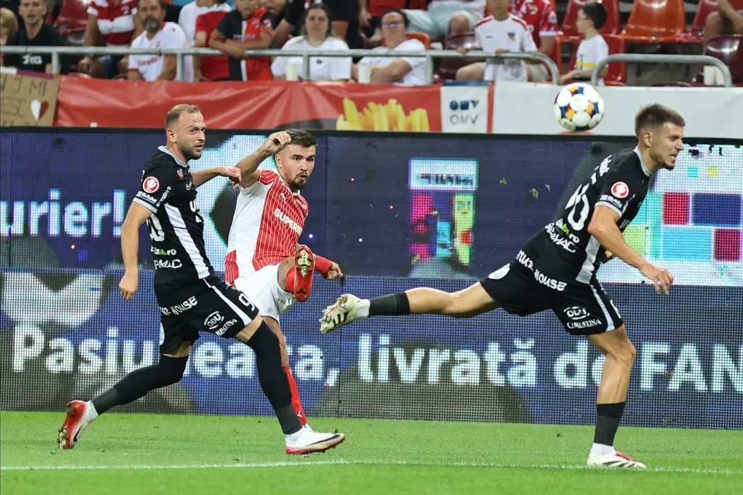 Danniel Charles Armstrong si Cristian Daniel Negut, Tiberiu Ionut Capusa in meciul de fotbal dintre Dinamo Bucuresti si AFC Hermannstadt Sibiu, contand pentru Superliga Superbet, desfasurat pe Arena Nationala din Bucuresti, sambata 30 august 2025. © FOTO:Gheorghe Fluster/SPORT PICTURES