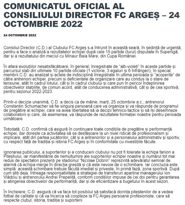 Andrei Prepeliță, dat afară din funcția de antrenor principal al lui FC Argeș! Cine îl va înlocui pe banca tehnică a piteștenilor