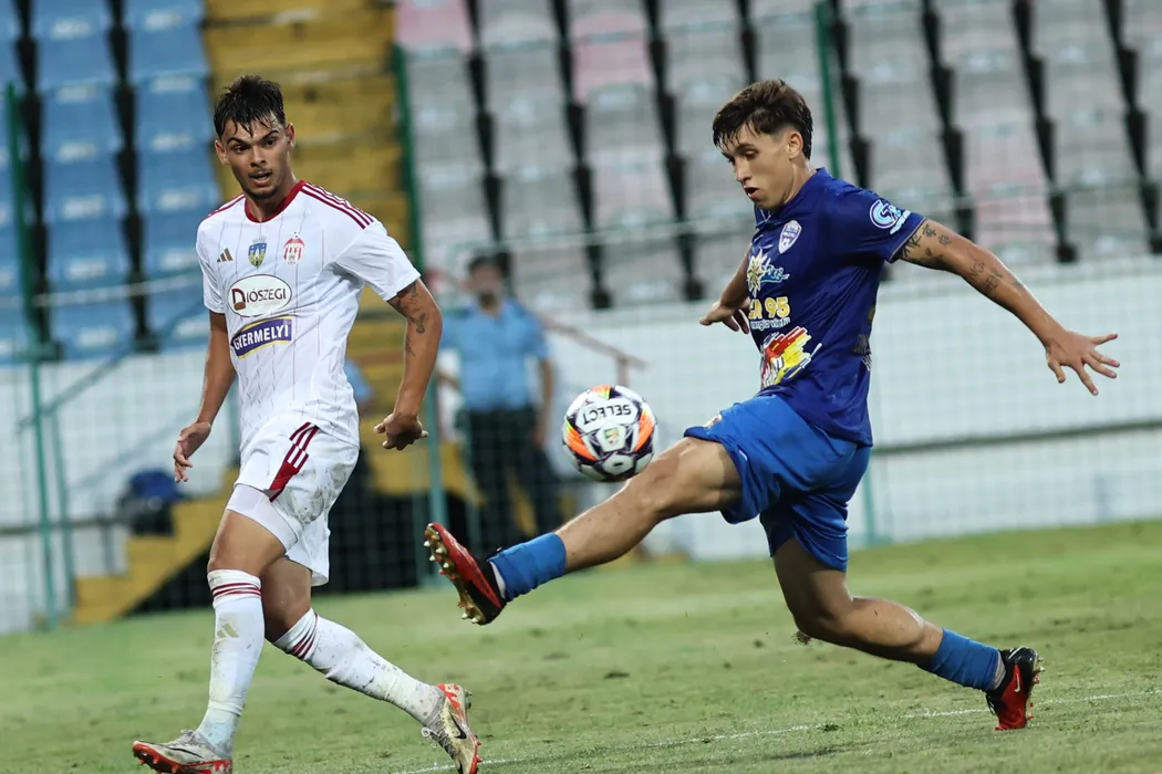 Robert Ionuț Sălceanu și Bogdan Florin Oteliță în meciul de fotbal dintre Gloria Buzău și Sepsi OSK Sfantu Gheorghe, contând pentru SuperLiga Superbet, desfășurat pe Stadionul Gloria din Buzău, luni 22 iulie 2024. © FOTO: Gică FLUȘTER /SPORT PICTURES