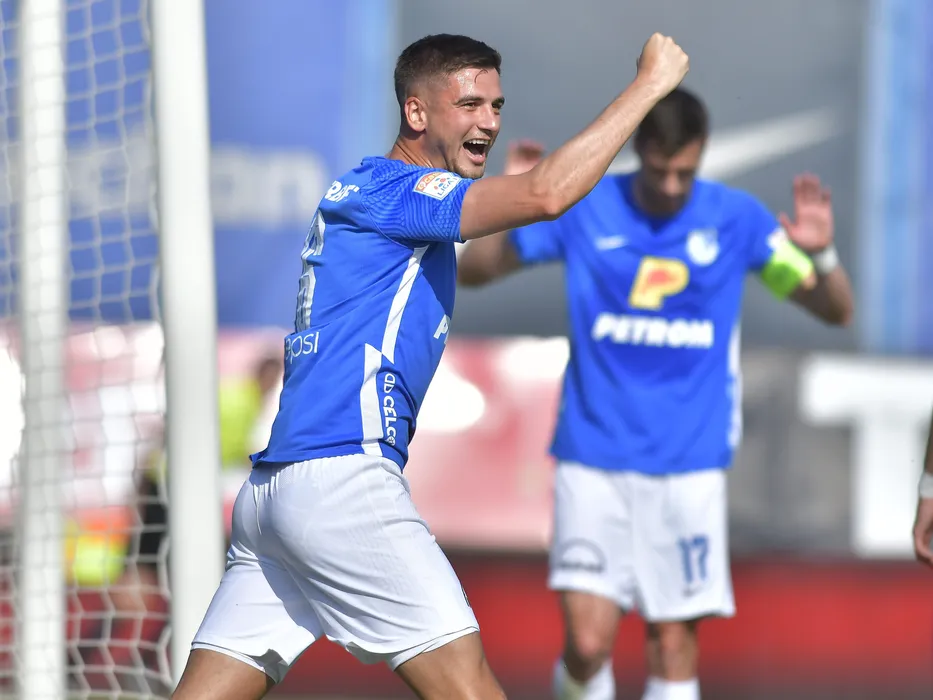 Dragos Ionut Nedelcu se bucura dupa un gol constantean marcat in meciul de fotbal dintre Farul Constanta si FC Arges, contand pentru Play off-ul Ligii 1 Casa Pariurilor, desfasurat pe Stadionul central al Academiei Gheorghe Hagi din Ovidiu, sambata 14 mai 2022. © FOTO:Razvan Pasarica/SPORT PICTURES