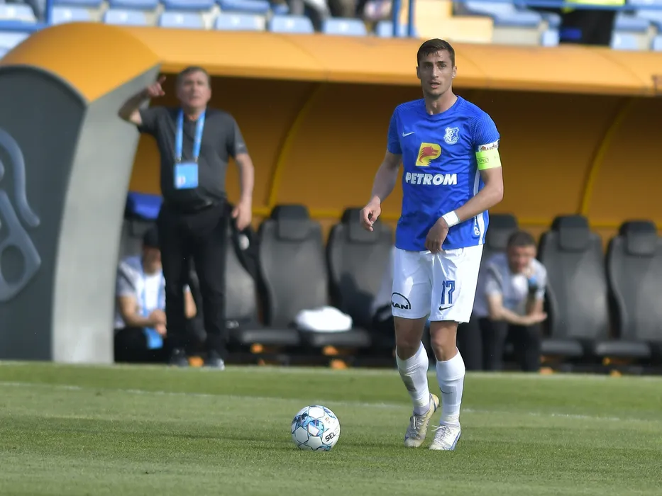 Ionut Justinian Larie in meciul de fotbal dintre Farul Constanta si FC Arges, contand pentru Play off-ul Ligii 1 Casa Pariurilor, desfasurat pe Stadionul central al Academiei Gheorghe Hagi din Ovidiu, sambata 14 mai 2022. © FOTO:Razvan Pasarica/SPORT PICTURES