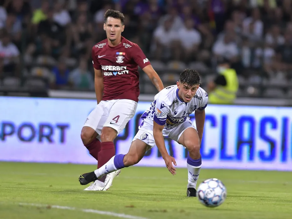 Ljuban Crepulja si Costinel Andrei Tofan in meciul de fotbal dintre FC Arges si Rapid Bucuresti, contand pentru Liga 1 Casa Pariurilor, desfasurat pe Stadionul Nicolae Dobrin din Pitesti, sambata 7 august 2021. © FOTO:Razvan Pasarica/SPORT PICTURES
