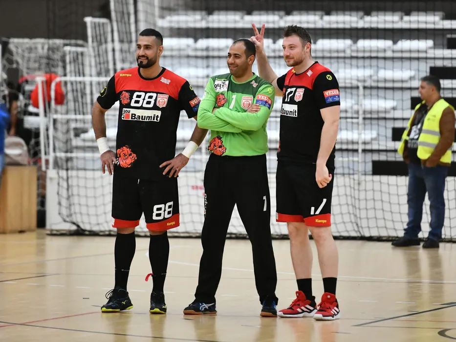 Handbalistii dinamovisti Alirezza Mousavi,Makrem Missaoui si Dan Savenco pozeaza dupa meciul de handbal masculin dintre Dinamo Bucuresti si Potaissa Turda, contand pentru Liga Zimbrilor, disputat in Sala Dinamo din Bucuresti, miercuri 12 martie 2020. © FOTO:Razvan Pasarica/SPORT PICTURES