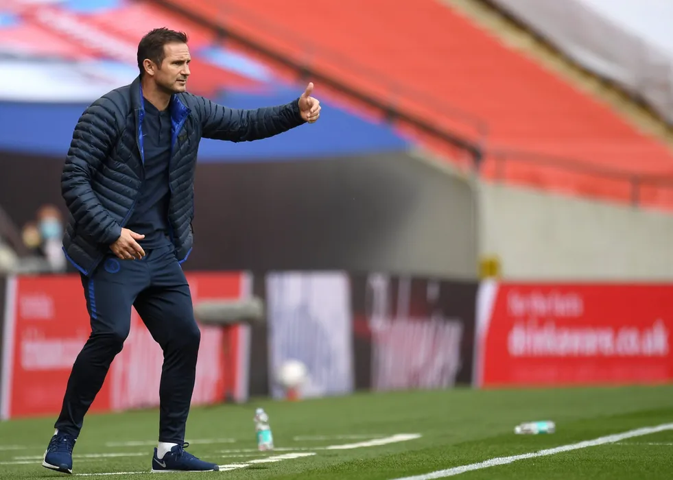 19 July 2020, England, London: Chelsea manager Frank Lampard gestures on the touchline during the English FA Cup semifinal soccer match between Manchester United and Chelsea at Wembley Stadium. Photo: Andy Rain/PA Wire/dpa