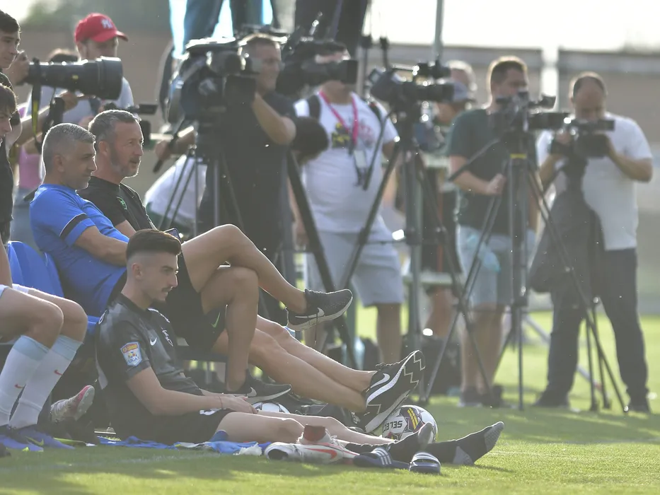 Marius Ianuli, Mihai Stoica si Andrei Daniel Vlad urmaresc meciul amical de fotbal dintre FCSB si FC Sfantu Gheorghe, desfasurat la Baza FCSB din Berceni, miercuri 29 iunie 2022. © FOTO:Razvan Pasarica/SPORT PICTURES