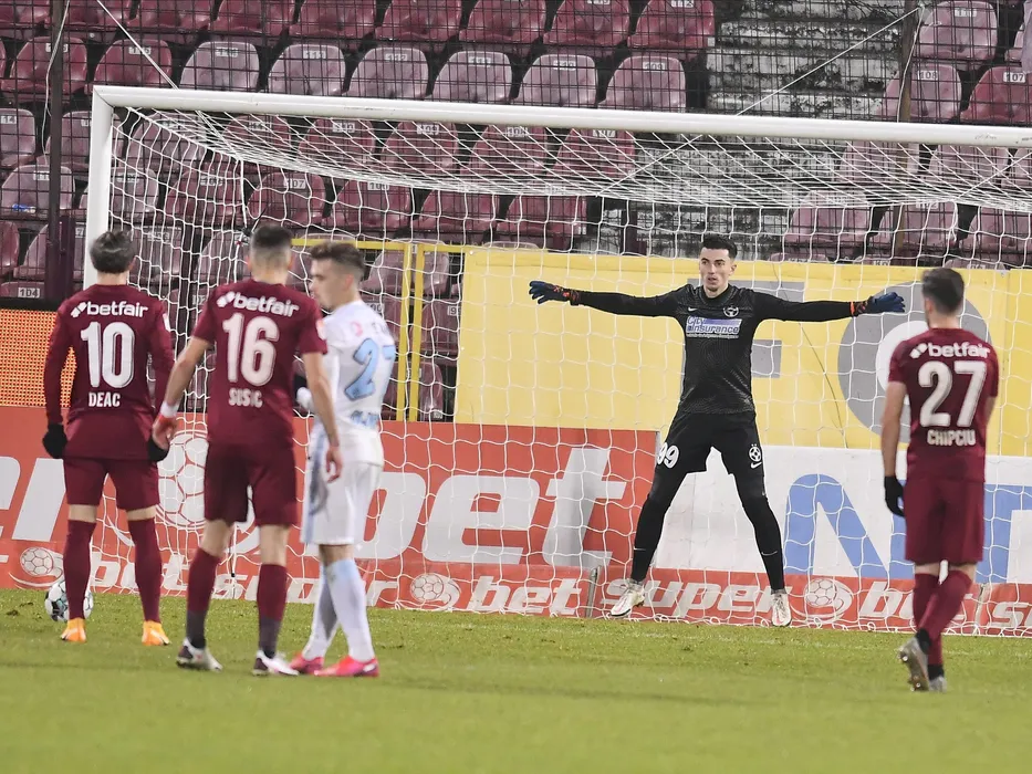 Ciprian Ioan Deac fata in fata cu Andrei Daniel Vlad la penalty in meciul de fotbal dintre CFR Cluj si FCSB, contand pentru Liga 1 Casa Pariurilor, desfasurat fara spectatori pe Stadionul Dr. Constantin Radulescu din Cluj Napoca, duminica 13 decembrie 2020. © FOTO:Razvan Pasarica/SPORT PICTURES