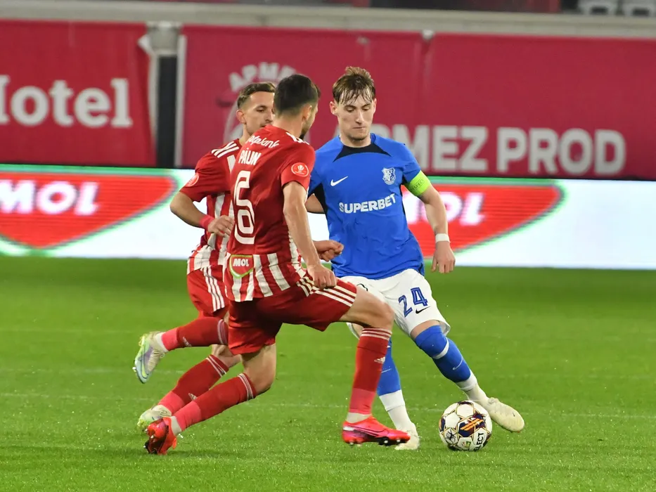 Marius Stefanescu si Constantin Grameni in meciul de fotbal dintre Sepsi OSK Sfantu Gheorghe si Farul Constanta, contand pentru Play off-ul Superligii Superbet, desfasurat pe Sepsi Arena din Sfantu Gheorghe, vineri 5 aprilie 2024. © FOTO:Bogdan Balas/SPORT PICTURES