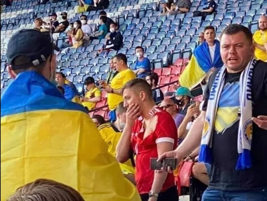 Scandal în zona destinată fanilor ucraineni! Un suporter rus s-a așezat în peluza suporterilor naționalei lui Andriy Şevcenko