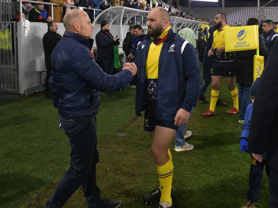 Andy Robinson il felicita pe un rugbyst roman dupa meciul de rugby dintre Romania si Georgia, din cadrul Rugby Europe Championship, desfasurat pe Stadionul National Arcul de Triumf din Bucuresti, sambata 12 martie 2022. © FOTO:Razvan Pasarica/SPORT PICTURES