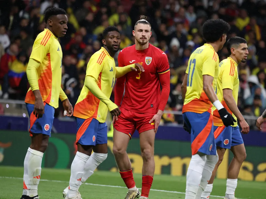 Jefferson Lerma si Radu Dragusin in meciul amical de fotbal dintre Columbia si Romania, desfasurat pe Stadionul Wanda Metropolitano din Madrid, marti 26 martie 2024. © FOTO:SPORT PICTURES