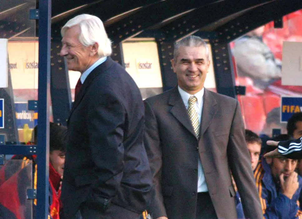 Karel Brucker (antrenor Cehia),Anghel Iordanescu (antrenor Romania).