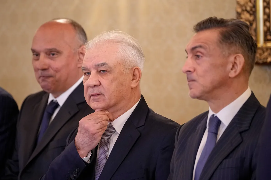 Florin Prunea, Anghel Iordanescu si Ilie Dumitrescu (s-d) participa la ceremonia in cadrul careia Gheorghe Hagi (nu se afla in imagine) este decorat de presedintele interimar Ilie Bolojan (nu se afla in imagine) cu Ordinul National „Steaua Romaniei” in grad de Cavaler, miercuri, 12 martie 2025, la Palatul Cotroceni din Bucuresti. ANDREEA ALEXANDRU / MEDIAFAX FOTO