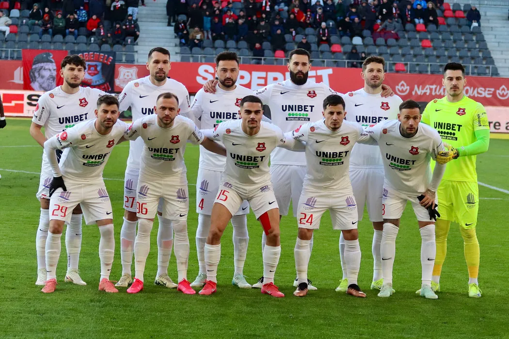 Fotbalistii sibieni la o fotografie de grup realizata inaintea meciului de fotbal dintre AFC Hermannstadt Sibiu si Gloria Buzau, contand petru Superliga Superbet, desfasurat pe Stadionul Municipal din Sibiu, vineri 21 februarie 2025. © FOTO: Valentin Macrea/SPORT PICTURES