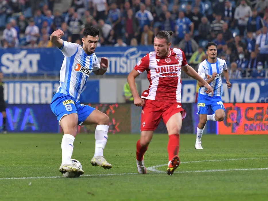 Deniz Giafer il faulteaza in careu pe Andrei Virgil Ivan in meciul de fotbal dintre Universitatea Craiova si Dinamo Bucuresti, contand pentru Liga 1 Casa Pariurilor, desfasurat pe Stadionul Ion Oblemenco din Craiova, luni 27 septembrie 2021. © FOTO:Razvan Pasarica/SPORT PICTURES