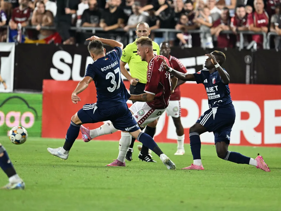 Mihai Catalin Bordeianu, Timotej Jambor si Ferreira Aldair Caputa in meciul de fotbal dintre Rapid Bucuresti si FC Botosani, din cadrul Superligii Superbet, desfasurat pe Superbet Arena-Giulesti din Bucuresti, luni 4 august 2025. © FOTO:Razvan Pasarica/SPORT PICTURES