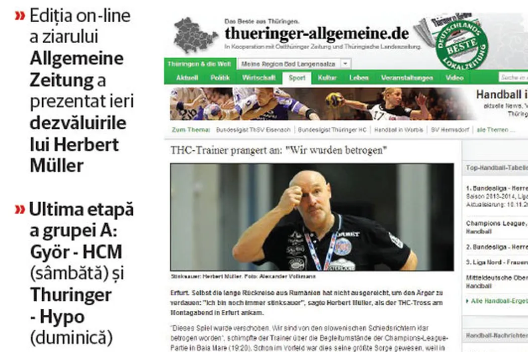 Antrenorul lui Thuringer, Müller, crede că meciul cu Baia Mare a fost „blătuit”: „Arbitrii au fost mituiți” Gazdele i-ar fi dat informația