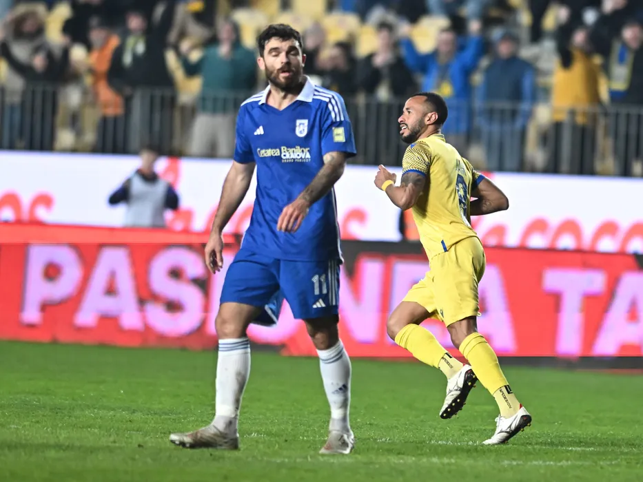 Jair Silva Tavares se bucură dupa un gol marcat în meciul de fotbal dintre Petrolul Ploiesti si FC U Craiova, contând pentru Play-out-ul Superligii Superbet, desfășurat pe Stadionul Ilie Oana din Ploiesti, luni 18 martie 2024. © FOTO: Răzvan PĂSĂRICĂ/SPORT PICTURES