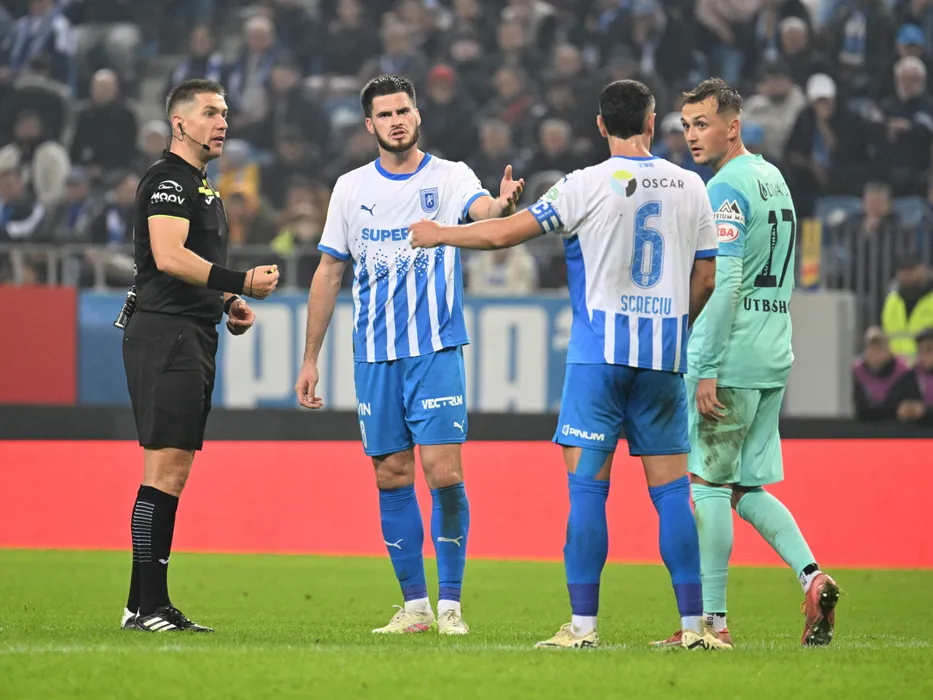 Arbitrul central Szabolcs Kovacs alaturi de Tudor Cristian Baluta si Luca Alessandro Mihai in meciul dintre Universitatea Craiova si UTA Arad, contand pentru Superliga Superbet, desfasurat pe Stadionul Ion Oblemenco din Craiova, duminica 9 noiembrie 2025. © FOTO:Razvan Pasarica/SPORT PICTURES